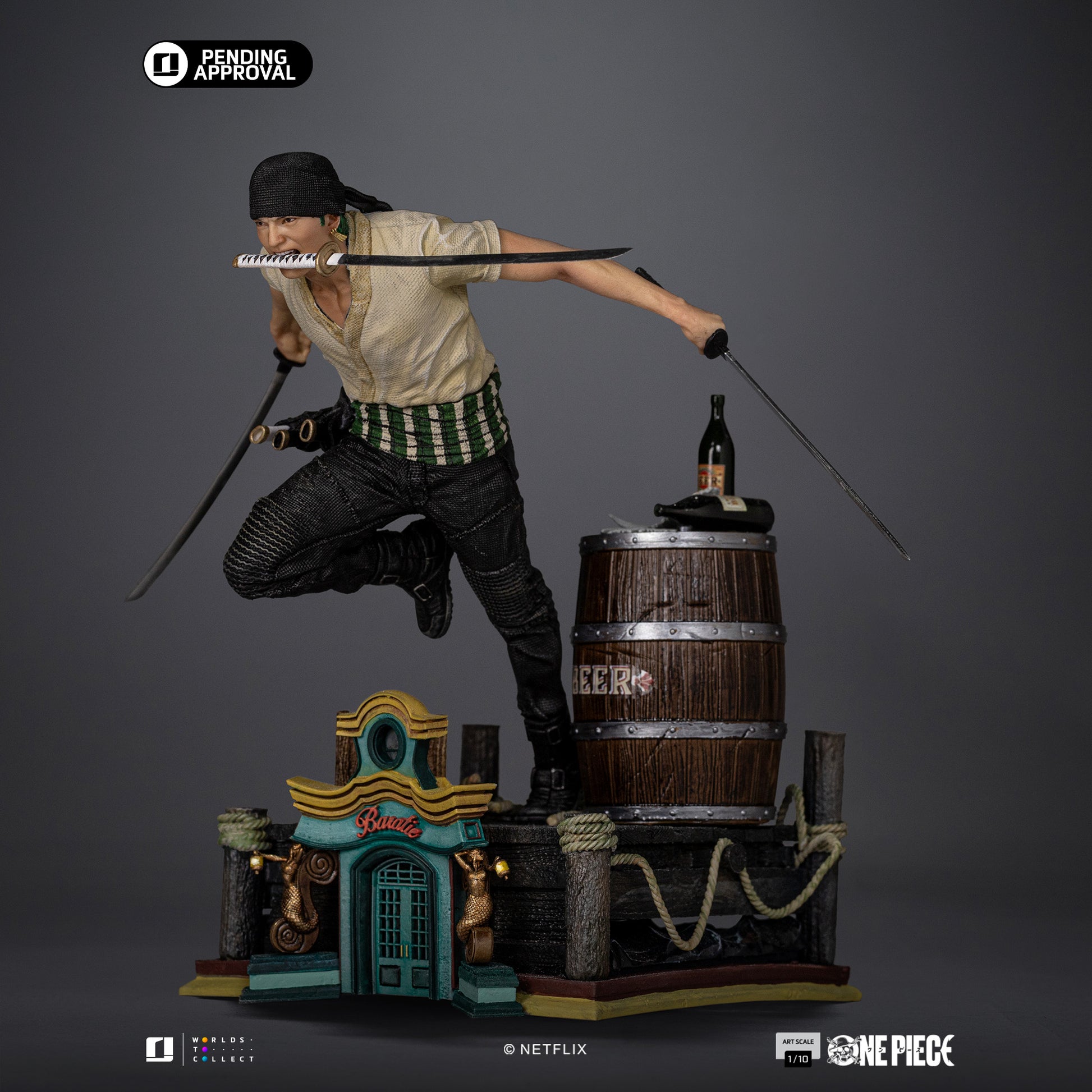 Iron Studios proudly presents the statue "Zoro – One Piece – Art Scale 1/10", honoring the Straw Hat crew’s swordsman in all his glory. Wielding his three swords in an iconic fighting stance, Roronoa Zoro is captured mid-battle, embodying strength, loyalty, and an unbreakable will.
